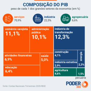 Pois bem, a composição total do PIB brasileiro tem a seguinte divisão: